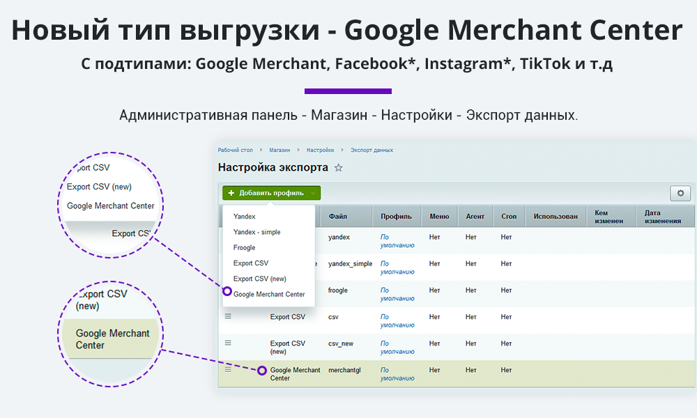 Добавлен профиль выгрузки в VK рекламу