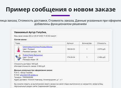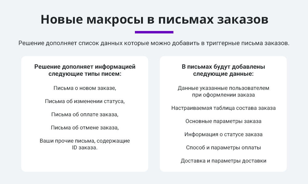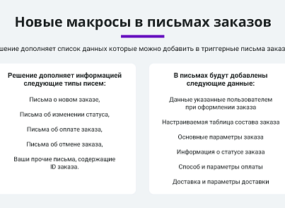 "Расширенные письма заказов: свойства и параметры заказа в почтовых событиях" - решение для 1с-Битрикс, с помощью которого вы сможете расширить автоматические письма интернет-магазина, такие как Новый заказ, Заказ отменён, Заказ оплачен и письма информирования о Изменении статуса заказов, добавив в них все необходимые данные заказа