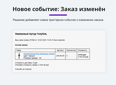 1. Решение реализует новое событие работы с заказами - Заказ изменён