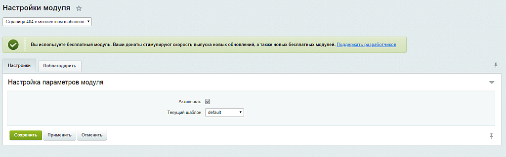Модуль добавляет поддержку страницы 404 с шаблонами.