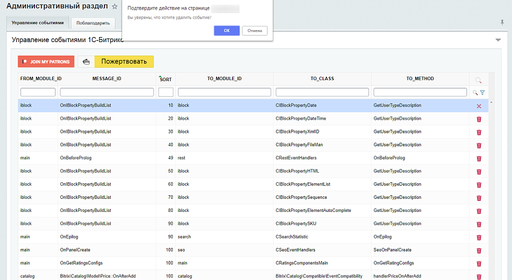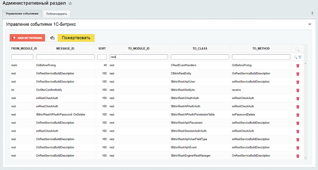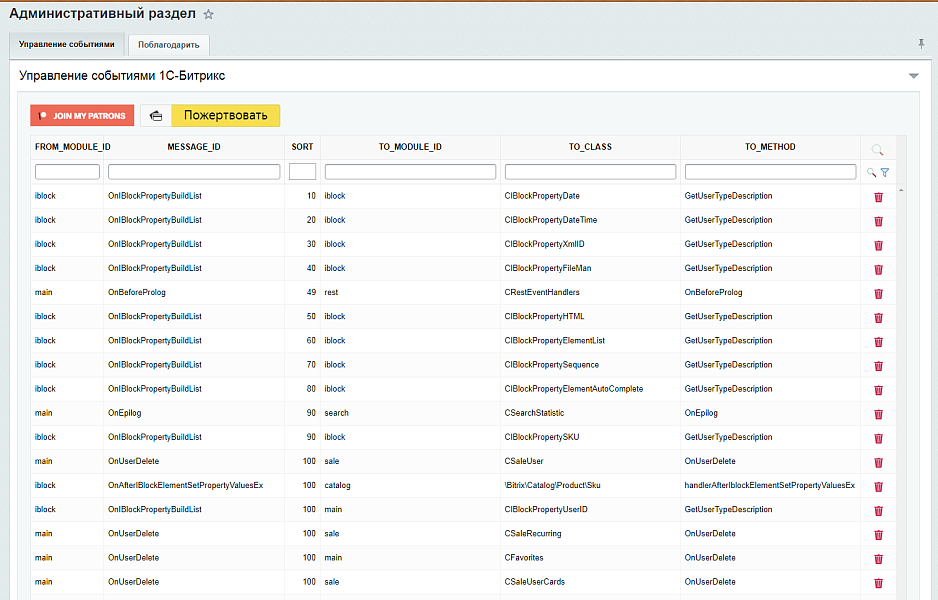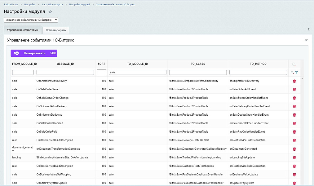 • модуль позволяет видеть всю информацию по обработчикам (модуль, класс, метод и т.п.)