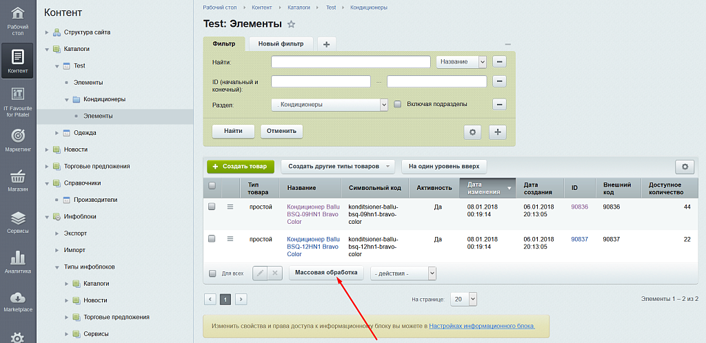 3) Добавлена возможность массовой обработки свойств инфоблока.