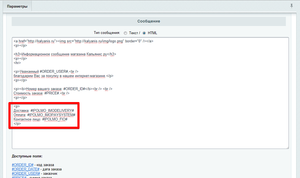 Теперь модуль позволяет добавлять информацию о заказе в любые письма, связанные с заказами.
