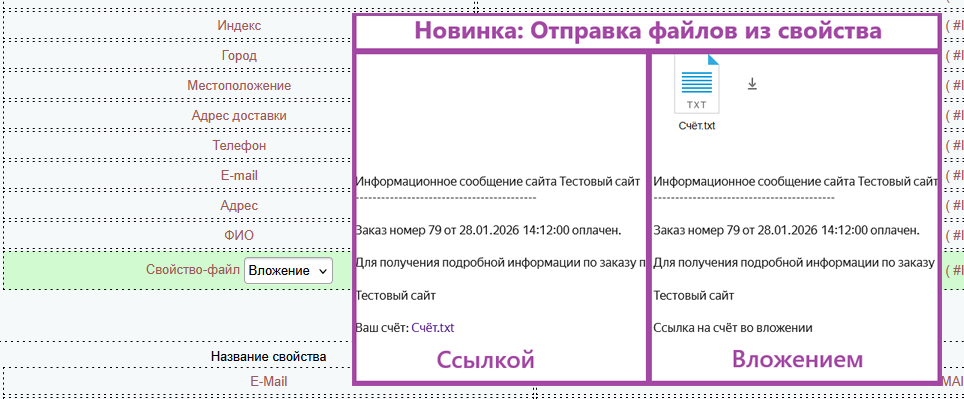 Добавлена возможность вставлять в письма информацию о платежном документе. |