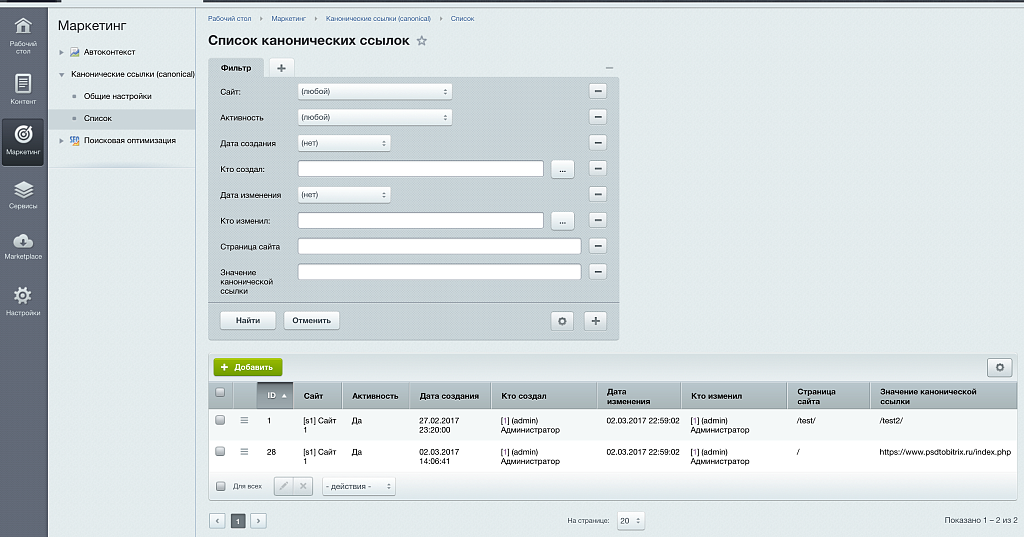 Модуль позволяет выставлять канонические ссылки на сайте.