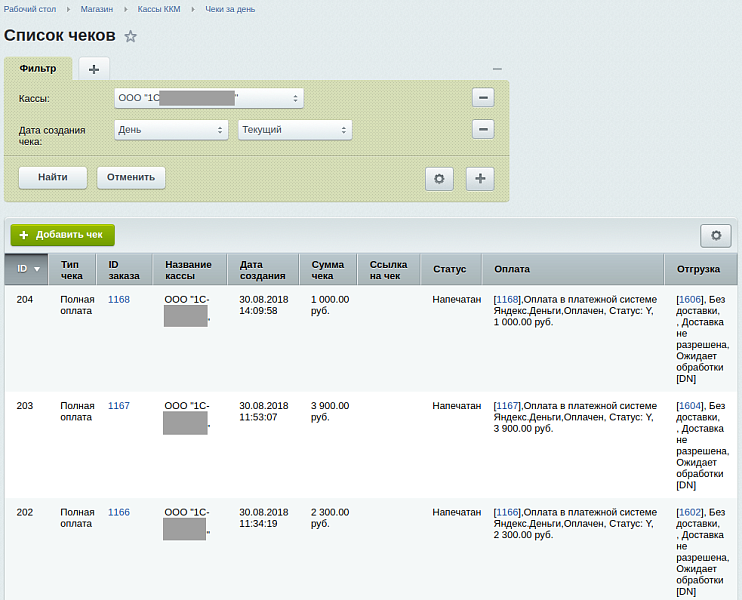 - Формирование чеков-возвратов переведено на стандартные механизмы Битрикс