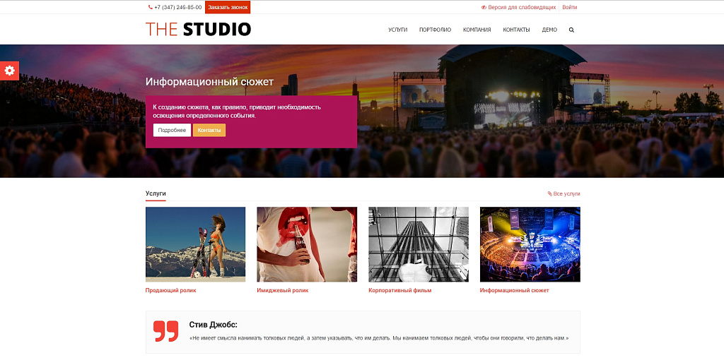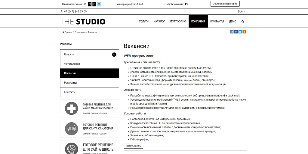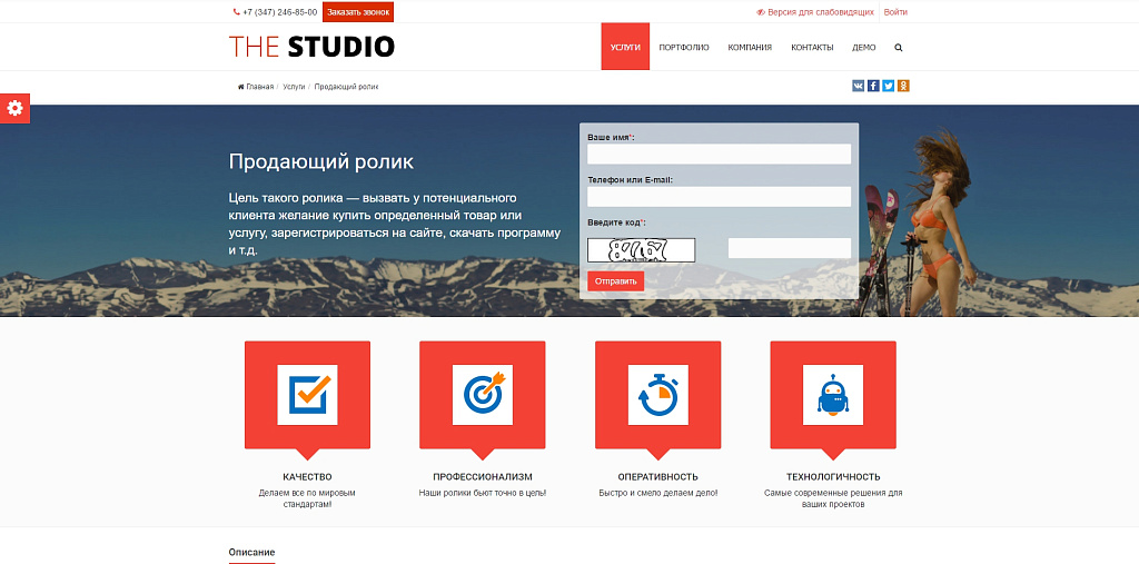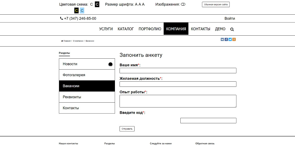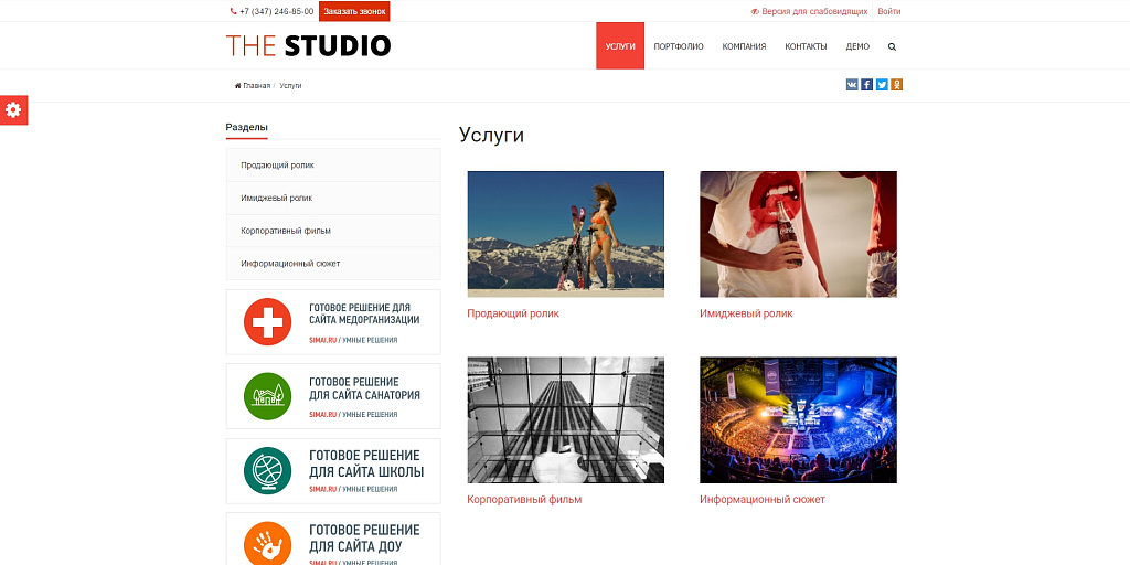 • Большие информационные возможности: каталог продукции, подробное описание услуг компании, новости, вакансии, фотогалерея.