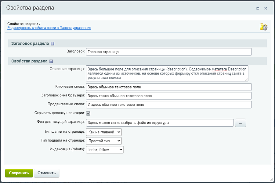Добавлены опции для скрытия некоторых вкладок в формах редактирования разделов и элементов (можно настроить отдельно как для публичной части, так и для административной).