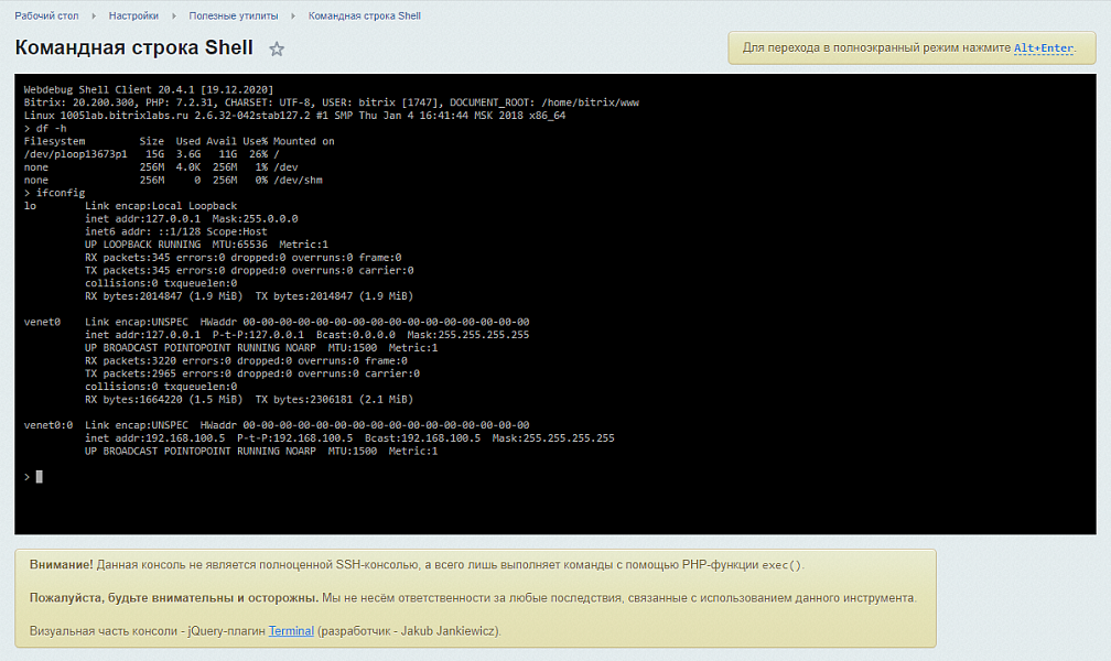 - Новый функционал: Командная строка Shell (примерно как SSH). |