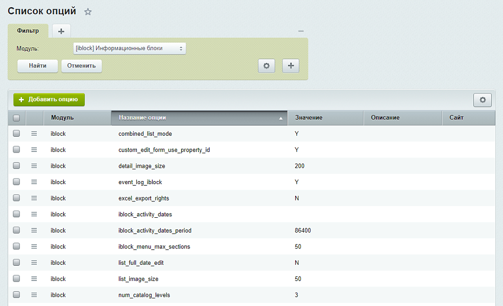 - При изменении или удалении опций сайта теперь сбрасывается кеш b_option. |