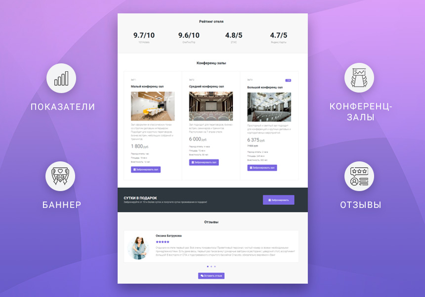 Готовый одностраничный сайт: Отель, гостиница, гостевой дом, база отдыха, хостел, санаторий